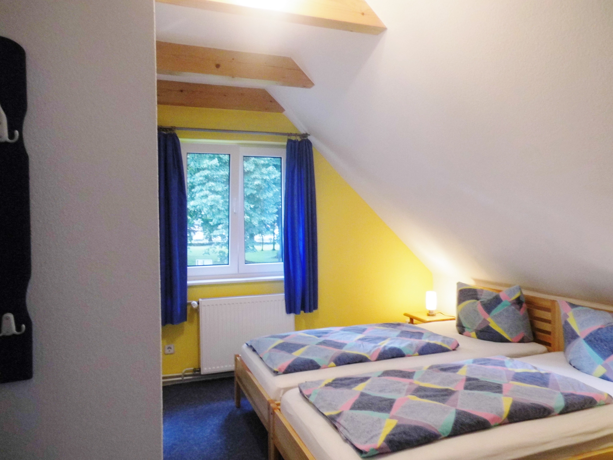 Das „Radlerzimmer“ ist mit 2 Einzelbetten, TV, Kleiderschrank und Tisch ausgestattet. Etagen Du/WC. Achtung – keine Küche, aber Kühlschrank, Wasserkocher, Toaster und Geschirr sind vorhanden.